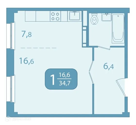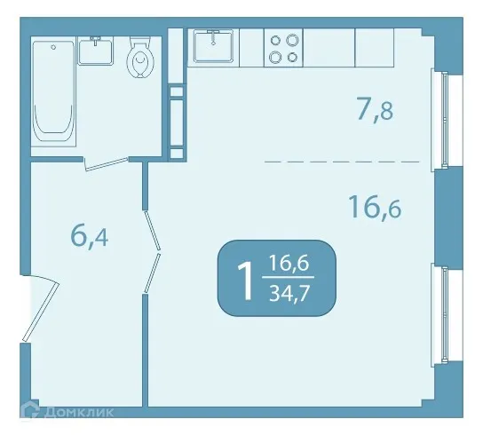 1 комн. квартира в Томске в ипотеку от 34 989 руб/месяц