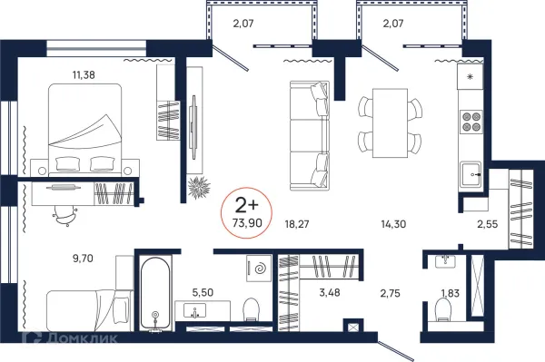 2 комн. квартира в Тюмени в ипотеку от 61 753 руб/месяц