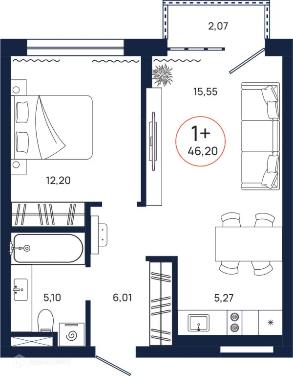 1 комн. квартира в Тюмени в ипотеку от 48 300 руб/месяц