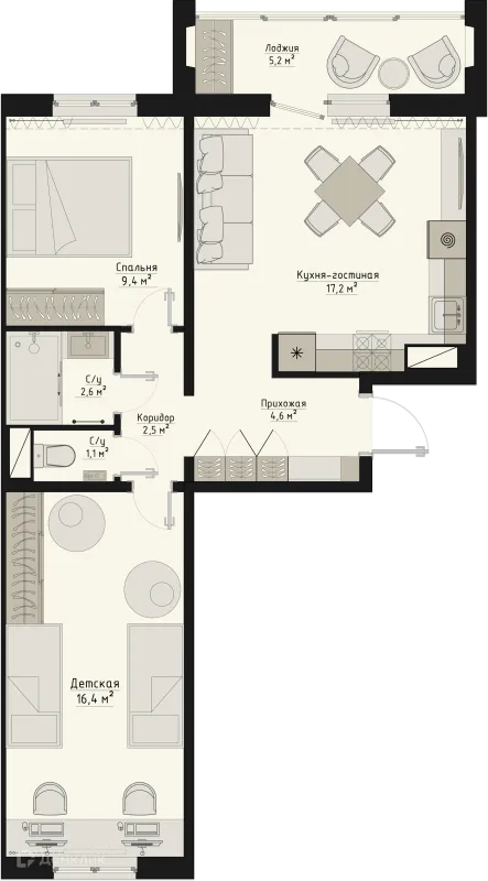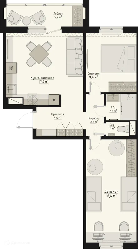 2 комн. квартира в Кургане в ипотеку от 45 870 руб/месяц