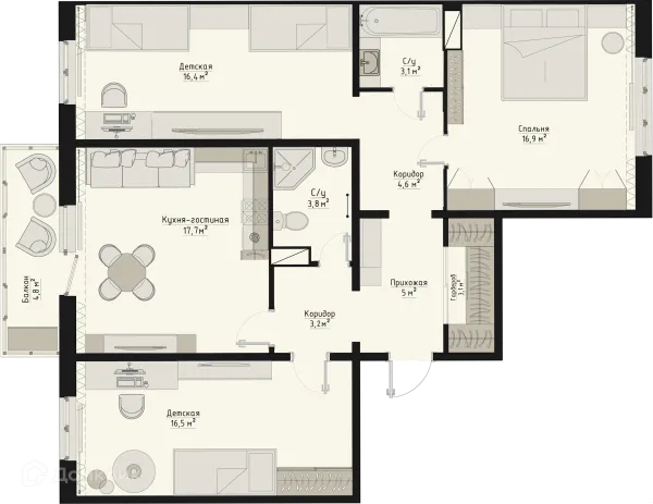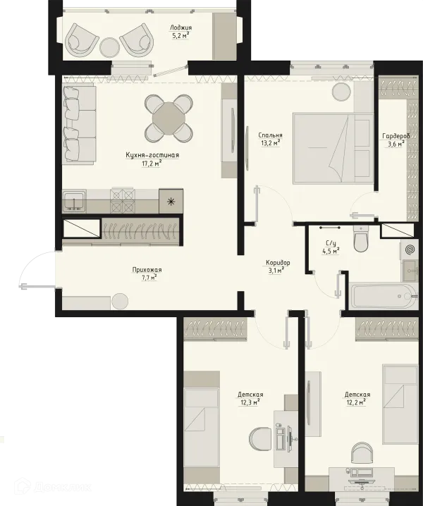 3 комн. квартира в Кургане в ипотеку от 56 311 руб/месяц