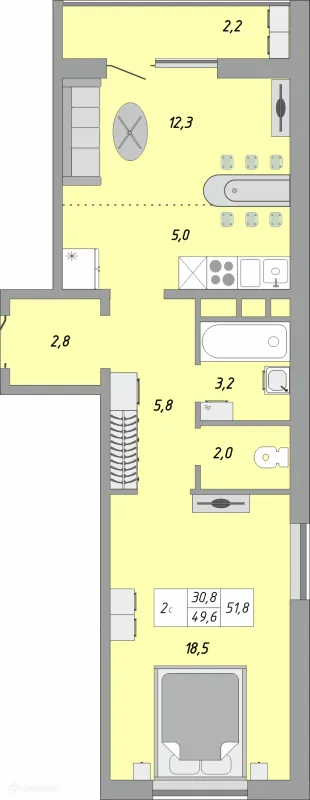 2 комн. квартира в Оренбурге в ипотеку от 46 772 руб/месяц
