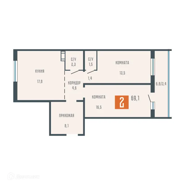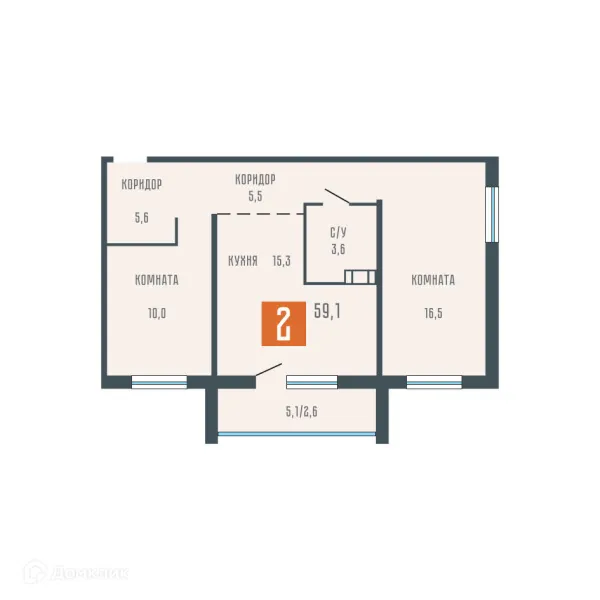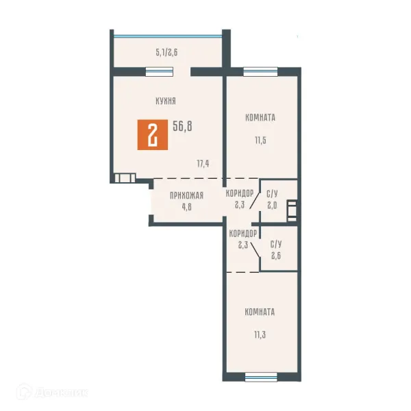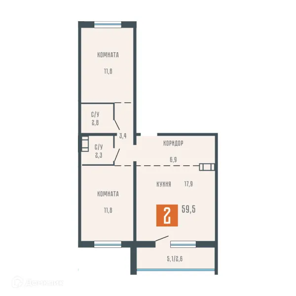 2 комн. квартира в Кургане в ипотеку от 58 299 руб/месяц