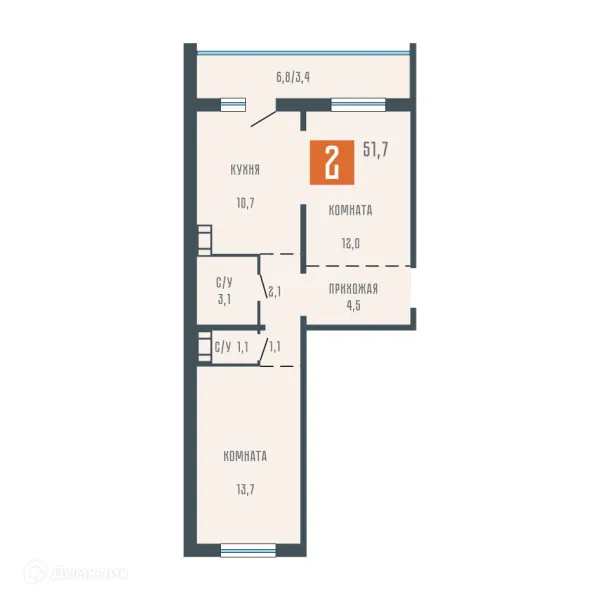 2 комн. квартира в Кургане в ипотеку от 48 514 руб/месяц